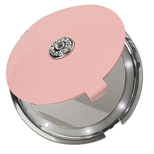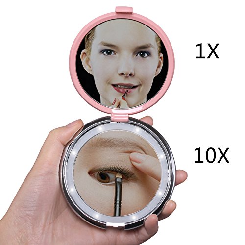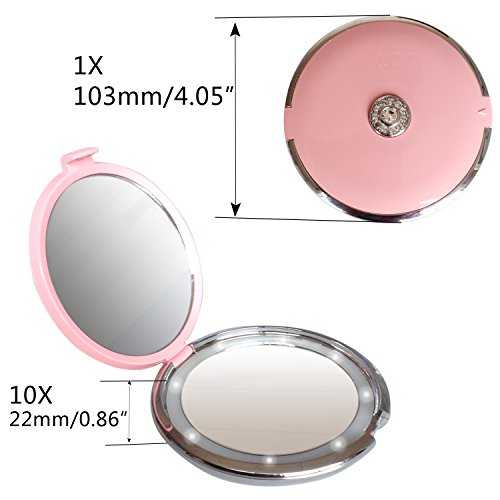 Compact Makeup Mirror,FushoP Small Makeup Mirror 1x/10x Magnifying Mirror Led Mirror Portable Travel Makeup Mirror Lighted Magnified Mirror Hand Held Magnifying Mirror Folding(Pink)