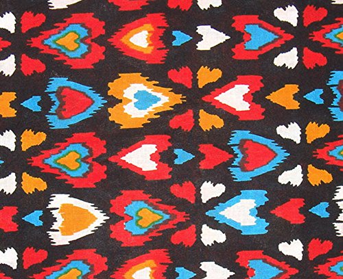 - Style : Traditional Indian Block Printed Fabric - Multicolored Hearts print on Black background. Please allow for some imperfections in terms of printing and dyeing as its a hand printed fabric