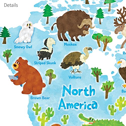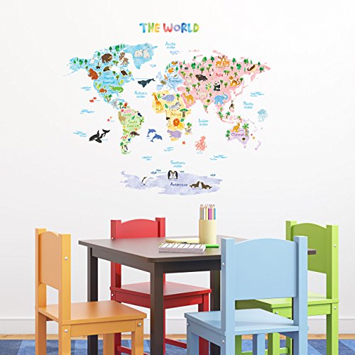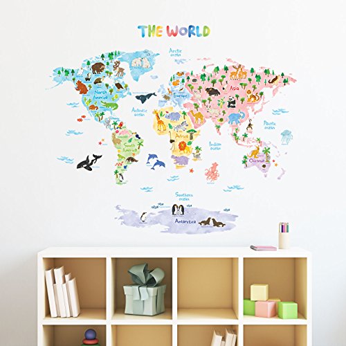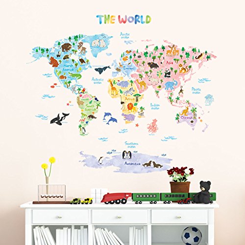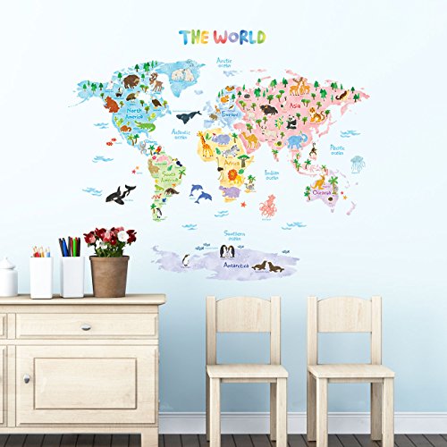 Decowall DMT-1615S Animal World Map Kids Wall Decals Wall Stickers Peel and Stick Removable Wall Stickers for Kids Nursery Bedroom Living Room (Large)