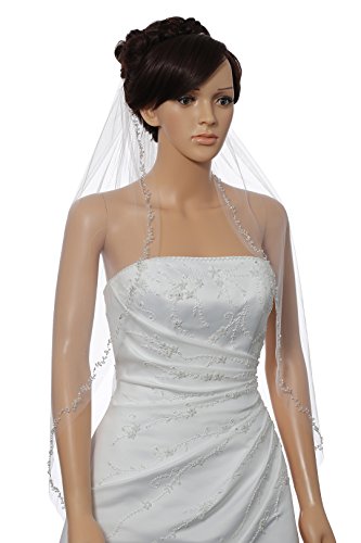 (Venus Jewelry)/Styling Tools/Styling Accessories/DIRECT FROM USA/1T 1 Tier Offset Flower Vine Edge Crystal Pearl Veil - Ivory Fingertip Length 36" V503