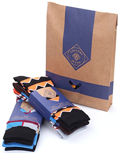 -. Feature : EXPERT FORMULATION - Gallery Seven cool socks are made with 98% polyester, 2% spandex, expertly crafted to create a substance of water repelling fibers that upholds its color and shape. These comfortable socks are sure to walk you the extra miles with smiles. / THE NEW LOOK - These pattern socks are amazing attractive men socks that is sure to make heads turn! Be part of the latest fashion styles trending now and enjoy these men crew socks in the comfort of your home, at work, or just a night out on the town. / CORPORATE ATTIRE UPDATE - Say good bye to your ordinary socks and reveal the second part of your fun self by wearing funky socks matched with your business wear, patterned socks and funny socks patterns will greatly enhance your business attire! / ELEGANT PACKAGING - Bestow your loved one's with the ultimate gifting experience! Polished, upscale packaging makes this awesome socks the ideal gift or Just an 'I love You' gesture. Make someone's day today! / TRUST IN GALLERY SEVEN - We are so sure you'll love your new mens dress socks that we're ready to back your purchase for a full 30 days. Get a full refund if you're anything less than lovin' it. Just return or exchange. It's that simple.