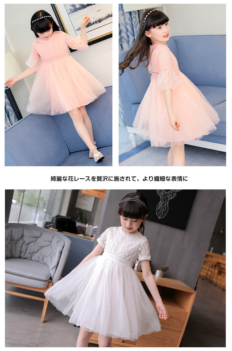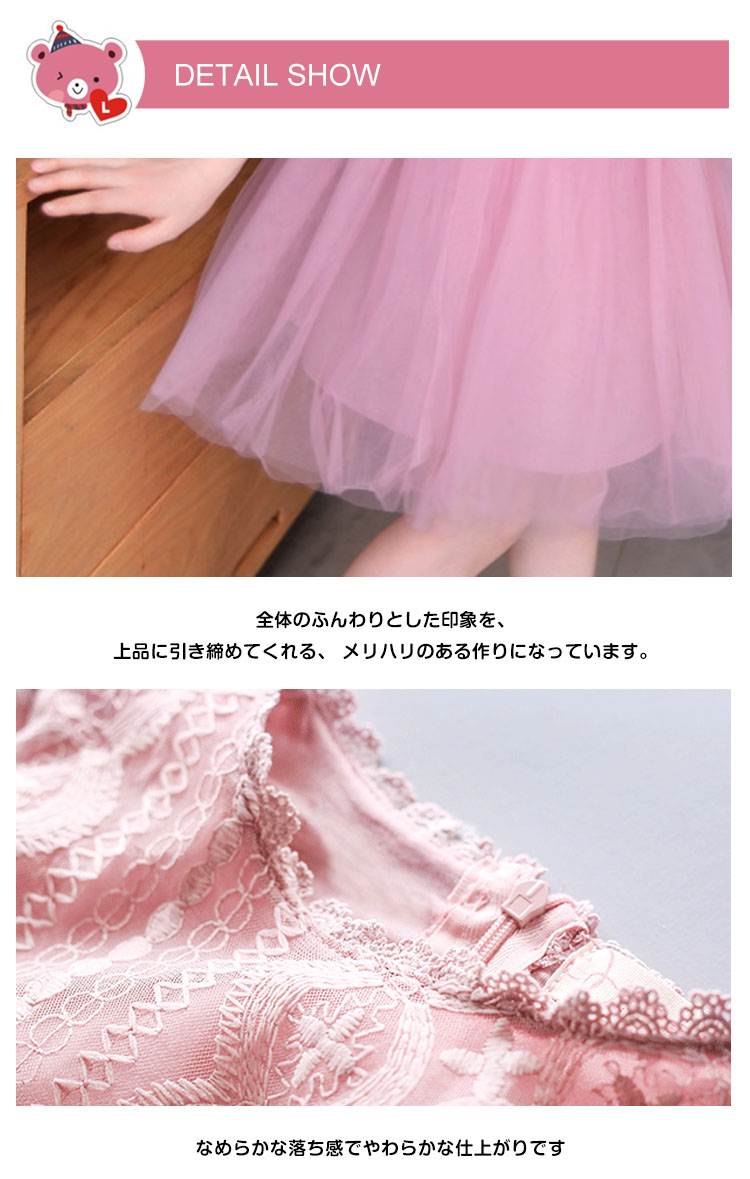 | お子さまの可愛らしさを存分に引き立てるキッズワンピースが新登場♪綺麗な花レースを贅沢に施されて、より繊細な表情に結婚式や発表会などのフォーマルシーンから、ちょっとしたおでかけまで♪ | |