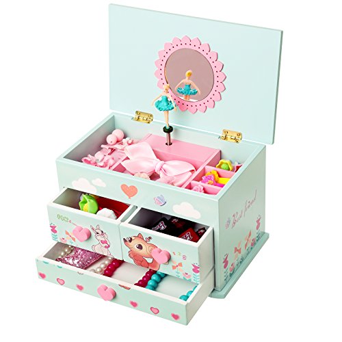 -. Title : SONGMICS Ballerina Musical Jewelry Box for Girls 3 Drawers Blue UJMC23B