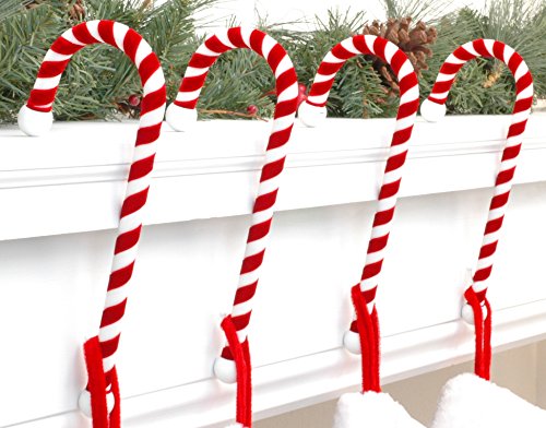 Candy Cane Stocking Holder, (VELVET Material version) 4-Pack, Classic Red & White