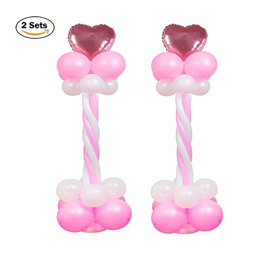 Kwayi Balloon Arch 2 Sets 59” Height With 40pcs Latex Balloon And Handheld Pump, Portable Balloon Arch Column Stand Decoration For Party / Wedding / Birthday / Celebration