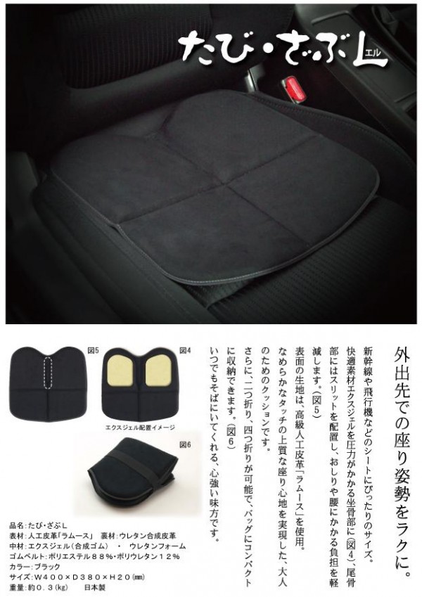 体圧分散や衝撃吸収に優れたエクスジェルを使用した携帯用ざぶとんです。折りたたんでコンパクトに持ち運びができるので、長距離バスや電車の移動時などに便利!!カバーは取り外して洗濯機で洗うことができます。 |