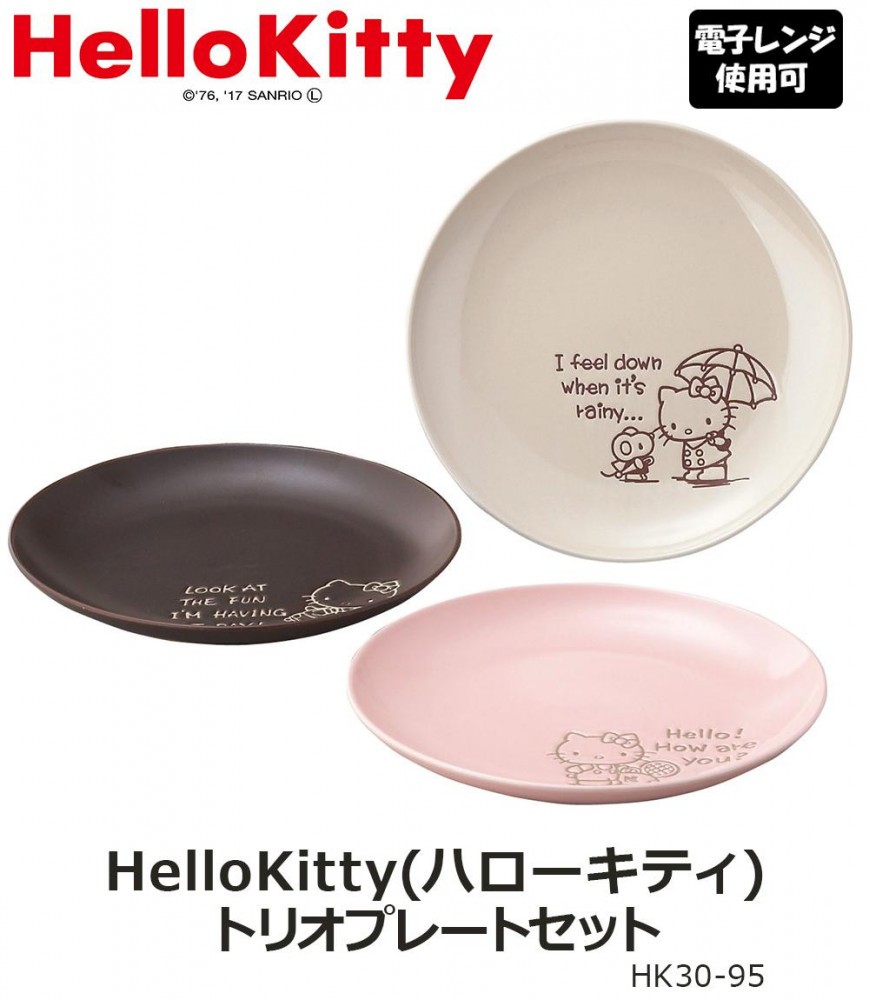 キティちゃんのプレート3点セットです。シンプルながらかわいいデザインです。ご自宅用はもちろん、ギフトにもオススメです。