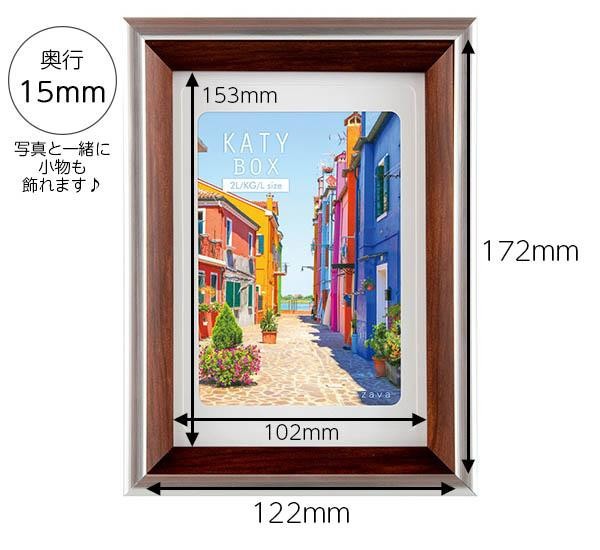 L判・ポスト判のマットが付いており、マットを外せば2L判もお使いいただけます。3サイズで使えて各パーツの入れ替えも可能なので、飾り方の幅も広がる♪奥行が15mmあるので、写真と一緒に小物も飾れます。 |