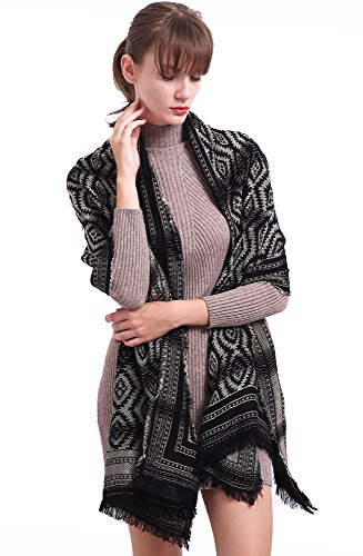 (Tsotu)/Accessories/Scarves/DIRECT FROM USA/Wool Ethnic Scarf for Women Gradient Color Shawl With Tassel Chunky Cashmere Wrap