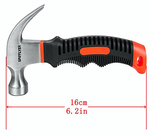 Spifflyer 8 Ounce Claw Hammer Nail Mini Hammers with Ergonomic Soft Rubber Handle, Mirror Polished Head