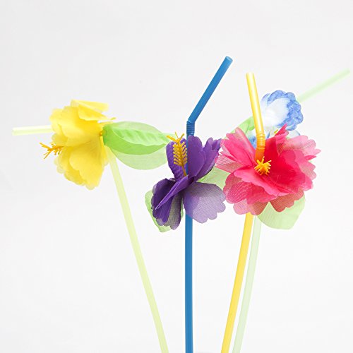 1 X Hibiscus Flower Bendable Straws (12 Pack)