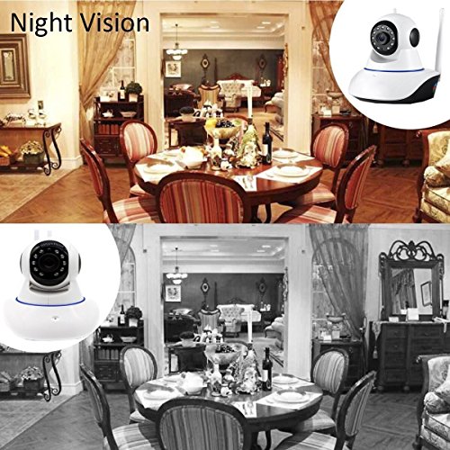 -. Feature : 32FT Night Vision Distance:MEIBEI security camera with 10 infrared lights, night vision up to 10 meters, automatically switch the day and night mode, so that you can see clearly even in the night. / PTZ Function:Tilt up to 90 degree,350 up to 355 degree,no matter where you install it, such as walls, ceilings, tables, etc. it can provide you with a full range of monitoring screen. / Multi-platform Remote Control:A surveillance camera can connect multiple devices, such as mobile phones (support IOS and Android), computers, and multiple devices at the same time online, coupled with two-way voice function, to accompany the elderly and children. / Smart Alarm:Our IP camera has the function of mobile monitoring, once the camera to capture the abnormal movement, it will save the screenshot, and sent to your phone, the camera built-in microphone can make you speak to stop thieves, appease crying children and so on. / 1 Year Warranty:We provide a one-year warranty, to provide you with a full range of services to ensure that you can enjoy 100% satisfaction.