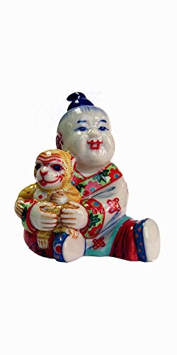 Chinese Golden Child holds the Zodiac animal symbolizing the Year of the Monkey. People born in the Year of the Monkey are said to be inventors and improvisors; quick-witted and clever.