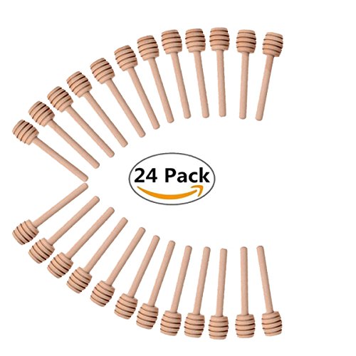 24 Pack Mini Wood Honey Dipper Sticks 3 Inch Server for Honey Jar Dispense Drizzle Honey and Wedding Party Favors-by Blinyang