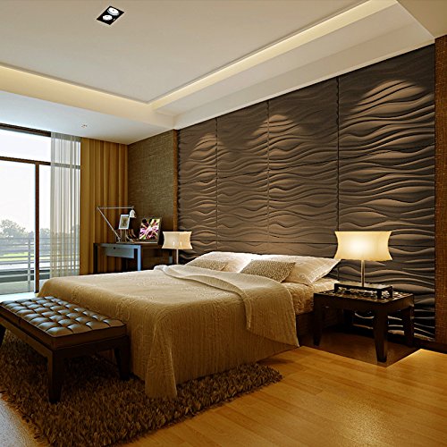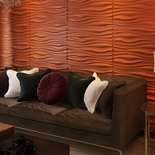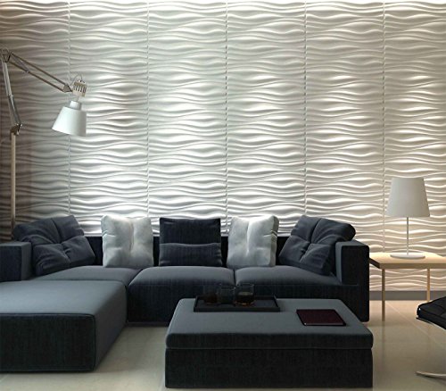 Art3d Decorative 3D Wall Panels Wave Board Design for TV Walls / Bedroom / Living Room Sofa Background, Pack of 6 Tiles 32 Sq Ft (Plant Fiber)
