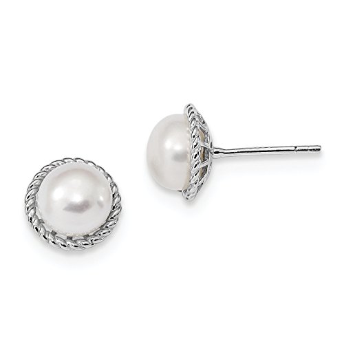ICECARATS DESIGNER JEWELRY 925 STERLING SILVER RH 9MM WHITE BUTTON FRESHWATER CULTURED PEARL POST STUD BALL BUTTON STUD EARRINGS