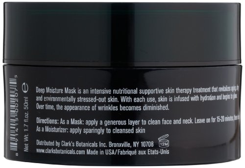 ReleaseDate : 2015-02-01 Studio : Clark's Botanicals Publisher : Clark's Botanicals Binding : Health and Beauty Product Description This rejuvenating mask is designed to hydrate, nourish and comfort dry, aging, environmentally damaged and dehydrated complexions. Natural ingredients work together to deeply moisturize and replenish the complexion, allowing it to regain radiance and suppleness over time. With regular use, fine lines and wrinkles will be diminished and a youthful glow will take their place. 0