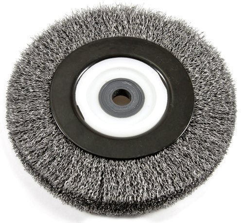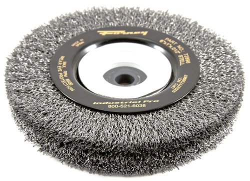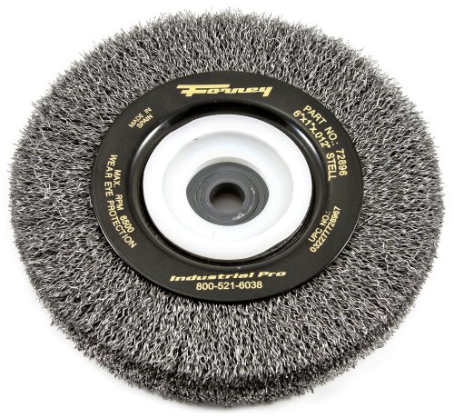 Forney 72896 Wire Bench Wheel Brush, Industrial Pro Crimped with 1/2-Inch Through 2-Inch Multi Arbor, 6-Inch-by-.012-Inch