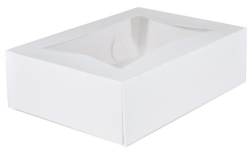 Southern Champion Tray 24263 Paperboard White Window Bakery Box, 14" Length x 10" Width x 4" Height (Case of 100)