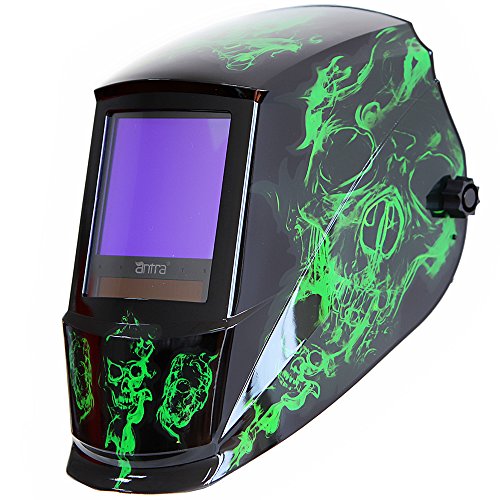 Jumbo Size!! Antra AH7-860-7312 Solar Power Auto Darkening Welding Helmet with AntFi X60-8 Wide Shade Range 4/5-9/9-13 with Grinding Feature Extra lens covers Good for Arc Tig Mig Plasma CSA/ANSI