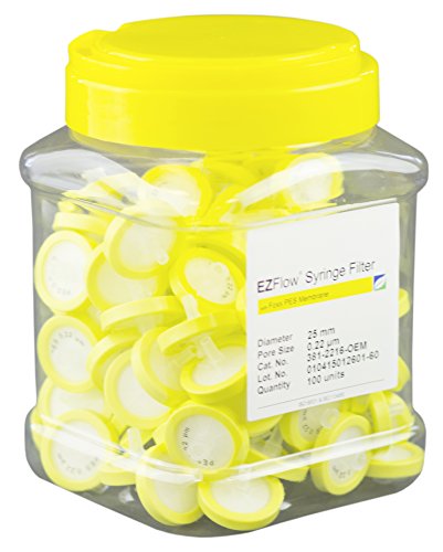 EZFlow Non-Sterile Polyethersulfone (PES) Syringe Filters, 0.22um Pore Size Membrane for Prefiltration and Sample Prep, 25mm, 100/PK