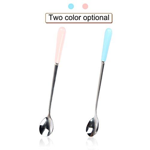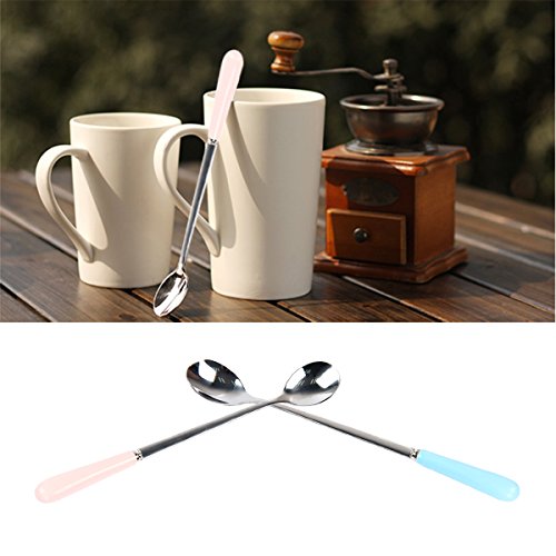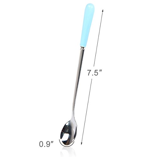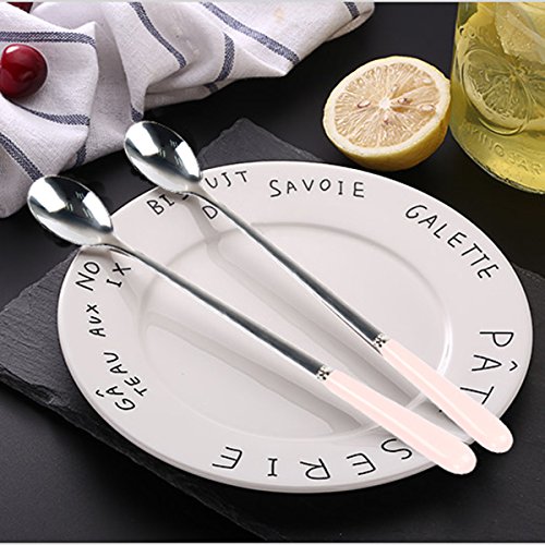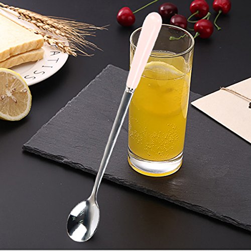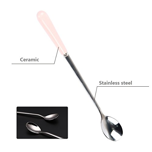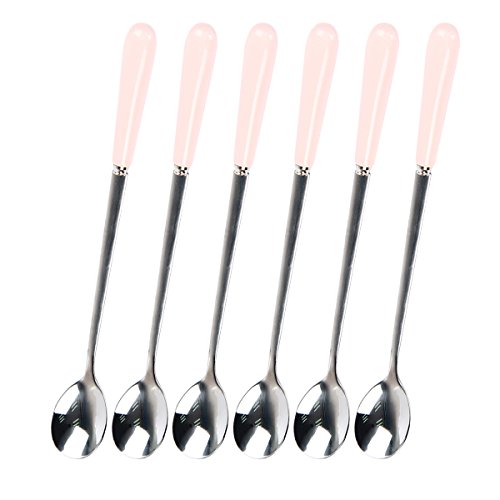 bouti1583 Set of 6 Stainless Steel Spoons for Iced Tea Coffee Cocktail Stirring Tableware with Ceramic Long Handle 7.6" Pink