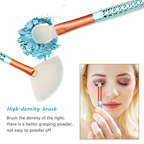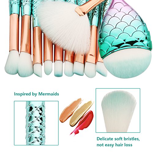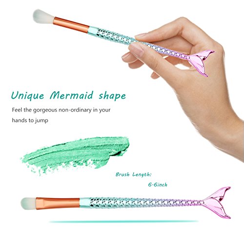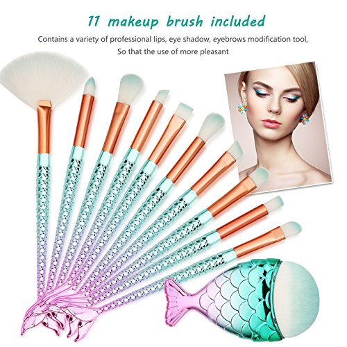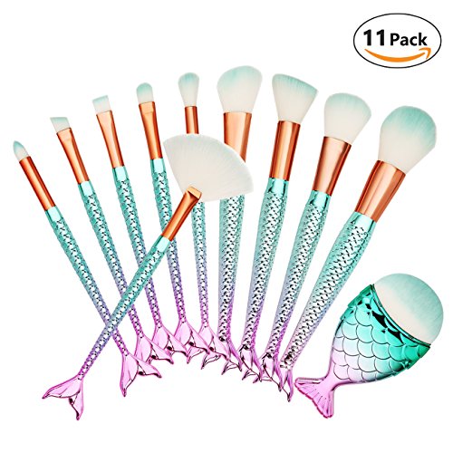 Mermaid Makeup Brushes Sets - 11 pcs Mermaid Handle Makeup Brushes with Chubby Fish Foundation Face Brushes