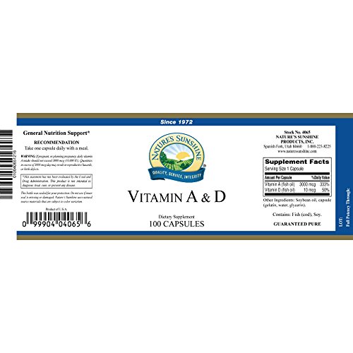 Naturessunshine Vitamin A D 10,000/400 IU 100 softgel caps (Pack of 6)