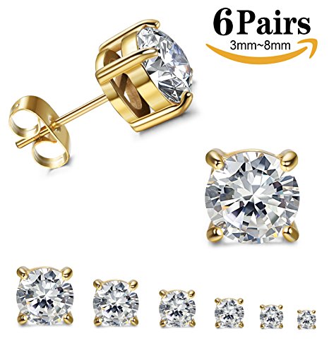 6 Pairs Pack: One order including 6 pairs of earrings .from tiny size 3mm to big size 8mm.Can satisfy with your different needing.Great value for your money.Never worry about losing your expensive diamond.
