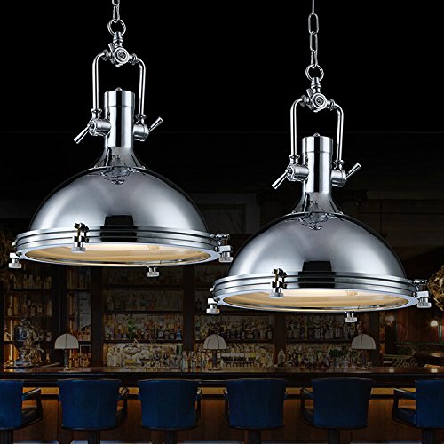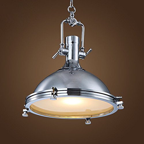 Industrial Nautical Style Single Pendant Light - LITFAD 15.75" Wide Pendant Lamp with Frosted Diffuser Mounted Fixture Chandelier in Chrome