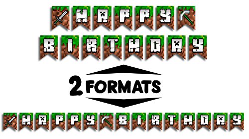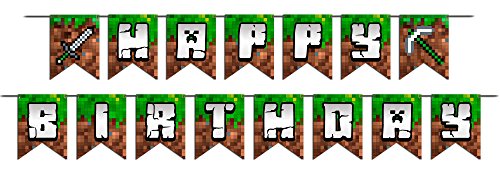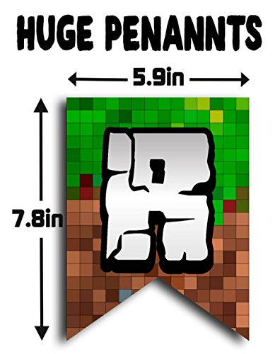 -. Feature : ★ FULLY PRE-ASSEBMLED - READY TO START THE PARTY WITHIN SECONDS. Don't waste hours of tediously assembling ribbon and pennants and have more time for your party preparation. We got you covered! All our Pixel Style Happy Birthday Party Banners come Fully-Pre-Assembled - just take it out of the box and you are ready to start the party. / ★ 2 SIDE P.R.INTED - MAKE YOUR BANNER SHINE FROM EVERY ANGLE. Experience a beautifully designed Happy Birthday Banner for gamer boys and girls that looks fantastic from every angle. High quality 2 Side P.R.Inted pixelated design guarantees a fun and professional look and provides the flexibility you need to place the Banner in the middle of the room, across corners or even outside. / ★ EXTRA THICK PAPER, EXTRA BIG PENNANTS, EXTRA LONG RIBBON. Preparing an amazing birthday party? Do not settle for poor quality party decoration. Experience thickest 350gsm paper with laser cut extra big 7.8 inch by 5.9 inch Paper Pennant Flags fully assembled to super long 200 inch design matching Ribbon for brilliant shine and highest Reusability. / ★ 2 FORMATS - LONG OR SHORT FOR HIGHEST FLEXIBILITY. Every place is different and every party has it's unique theme. That's why party decorations should fit Your specific needs. Our Mining Style Paper Banner comes in a Huge 200 inch total size but can easily be transformed within seconds into a 2 Part Banner to fit smaller places. / ★ EXPERIENCE HIGH QUALITY P.R.INTING WITH SPECTACULAR VIBRANT COLORS. Gamer Kids love the highly realistic and brilliant HD colors we use for all our party supplies. Enjoy truest greens and deepest browns P.R.Inted in highest HD resolution with the latest P.R.Inting technology. If you are within a few feet or far away, our powerful colors shine from any distance.