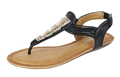 Forever Link Women's Embellished Crystal Rhinestone Metallic Thong Sandal
