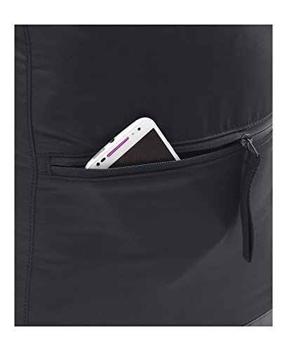 Studio : Under Armour Bags Publisher : Under Armour Bags Binding : Sports Product Description UA Storm technology repels water to protect your gear from the elements. Main compartment zips shut with custom puller. Soft, tricot-lined sleeve inside back panel fits up to a 15” laptop. Additional sleeve inside front panel fits up to an iPhone 6. Adjustable pack straps are webbed padded for total comfort. Unique 2-in-1 design gives you the option to either grab it by the straps and carry it like a tote or use the straps and wear it like a backpack. Dimensions: 17.75' x 4.75" x 19.25" . Cubic Volume: 1,623 Cubic In. / 26.6 L . 0