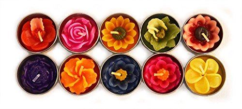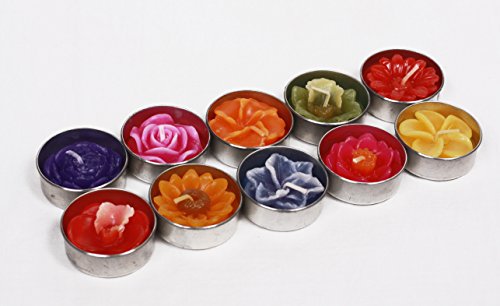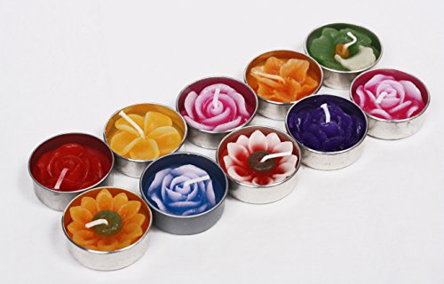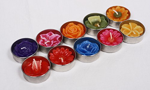 TEA LIGHT CANDLES - SET OF 10 - TROPICAL FLOWER CANDLES - ASSORTED COLORS