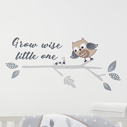 Bedtime Originals Little Rascals Grow Wise One Owl Wall Appliques, Gray/White