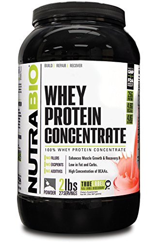 -. Title : NutraBio 100% Whey Protein Concentrate WPC80 (Strawberry) - 2 Pounds