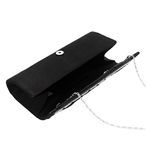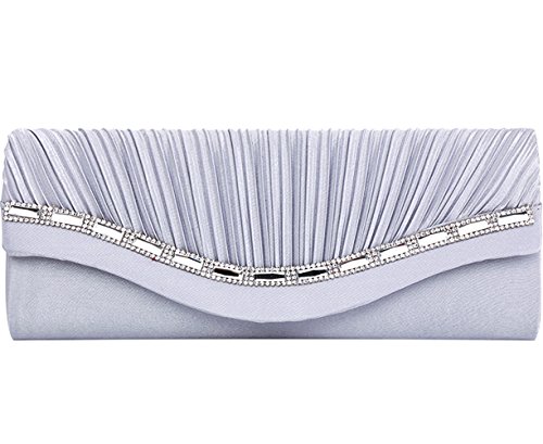 -. Feature : High quality and Durable hardware buckle attached! / Dimension : 26*11*5cm/10.23*4.33*1.96inches (L*W*H) / Perfectly pleated satin fabric , Front shinny stones studded bring chic feeling! / Magnet snap closure,Interior slip pocket, Comes with a detachable silver chain can be used as a cross body bag or a shoulder bag / Perfect For Wedding, Party, Prom, Ball and evening events!!!