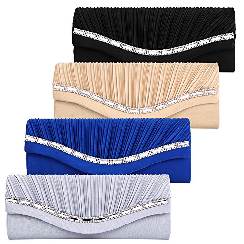 -. Title : Jubileens Womens Pleated Satin Wedding Evening Bridal Clutch Purse With Rhinestones