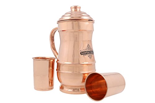 -. Title : 100 % Pure Copper Jug – 手作りIndian Maharajaデザイン銅ピッチャー – 50オンス/ 1.5リットル – のセット2銅水でメガネby RawyalCrafts