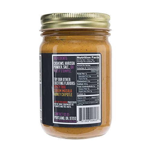 ReleaseDate : 2016-01-16 Studio : Eliot's Adult Nut Butters LLC Publisher : Eliot's Adult Nut Butters LLC Binding : Grocery Product Description Harissa Cashew Butter. Yes we've put this complex Moroccan hot pepper sauce's flavor into the rich creaminess of cashew butter. The subtle heat and intense spices of Harissa pair incredibly well with natural sweetness of the cashews. This nut butter may just be our best flavor yet...and boy do our fans love our other flavors. Do yourself a favor and be the first person you know to have this incredible flavor. The only question you'll have to ask yourself is: Share the goodness or keep it all yourself? 0