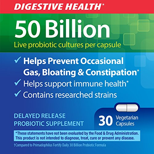 EXTRA STRENGTH 50 BILLION: While many probiotic brands only provide 1 to 10 billion live cultures per serving, Primadophilus® FortifyTM Extra Strength† are powerful daily formulas with 50 billion live probiotic cultures per capsule to help balance and replenish your intestinal tract.*