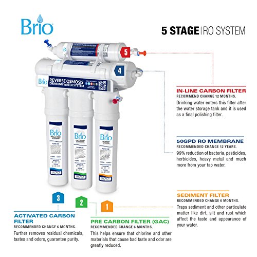 Brio High Capacity Under Sink 5-Stage Reverse Osmosis Drinking Water Filtration System and Ultimate Water Softener - LROQ500