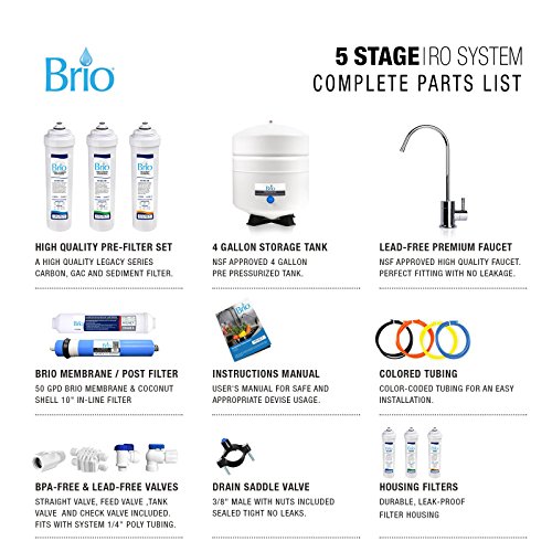 - Includes first set of filters, RO tank, faucet, and all parts required for installation
