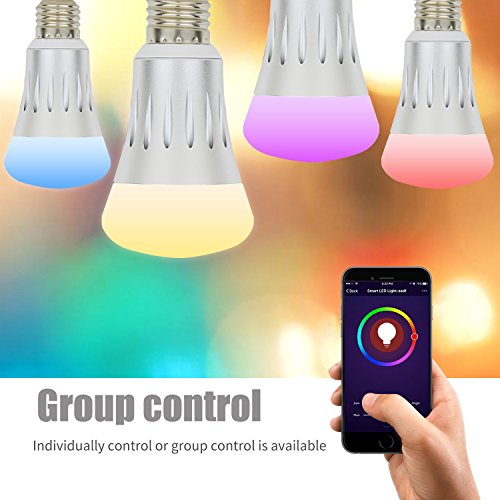 - Timer Function and Groups Setting: Schedule your smart WiFi bulb to turn on/off at preset time or color.Wake up gently with your favorite color. Come home with security light. Also,APP allows you to control a smart bulb individually or control groups bulbs together.