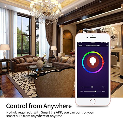 - Wireless Control & Voice Control: You can control this WiFi light bulb from anywhere with your tablet or smartphone using the free Smart Life app (Support Android 4.1 above and IOS8 above). Also this smart bulb works with Amazon Echo, Alexa,Google home,no hub required.
