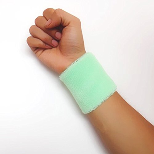 -. Feature : Size:3 inches x 3 inches (Fit most adult male and female),TWO wristbands are in the package. - Material: 95% cotton and 5% lycra, extra thick.Do not fade,the color would stay bright after times of washing. / Double layer is designed to absorb sweat effectively, to help you feel good when doing sports. give a person the feeling smooth and clean. Has a natural warmth, wear up, very soft, very comfortable. / Great for all activity: Running, Walking, Playing Basketball, Playing Tennis, Hiking, Going To The Gym, Taking Your Dog Rover Out For A Leisurely Stroll and more. / Soft breathable fabrics reduces growth of odor-causing bacteria,relieves wrist pain through pressure on injured wrists / Wristbands in assorted neon colors ( black, white, blue, red, orange, yellow, green, pink, grey, purple)