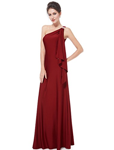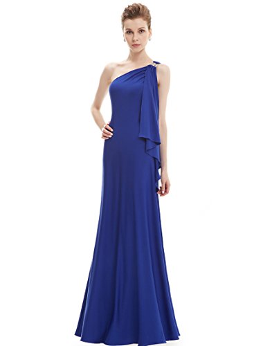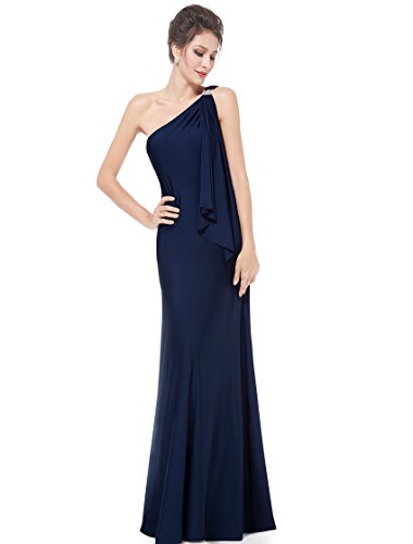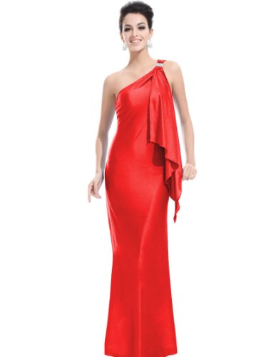 Gorgeous long evening party dress. Unadjustable one shoulder and non-removable diamante decorates the shoulder strap make this dress more attaractive. It's a good choice to get it!Feature