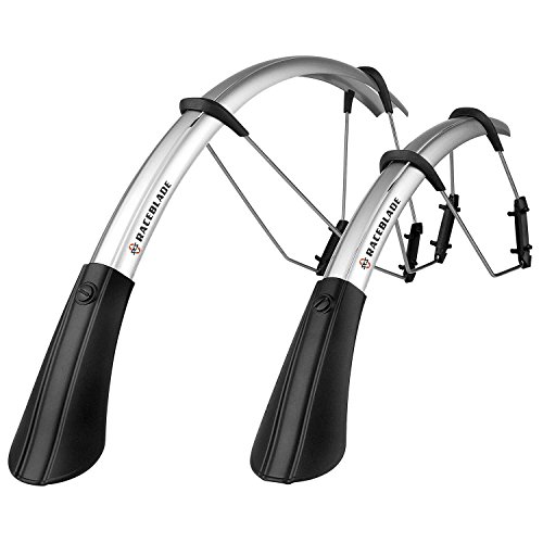 Studio : SKS Publisher : SKS Binding : Sports Product Description The SKS Raceblade Fenders make it easy to get your miles when the skies are unfriendly. The Raceblades' plasticized aluminum fender material sheds dirty water and road grime like a duck dipped in WD-40, and the quick-release, non-marking rubber clips make application and removal a snap. These are the same fenders used by nearly every pro team in Europe and the USA, so they'll silence your rainy-day protestations easily. After all, if you let a little rain stop you from carrying out your training regimen, you can't really call yourself a serious cyclist. The Raceblades fit 700C wheels from 18-23mm wide.