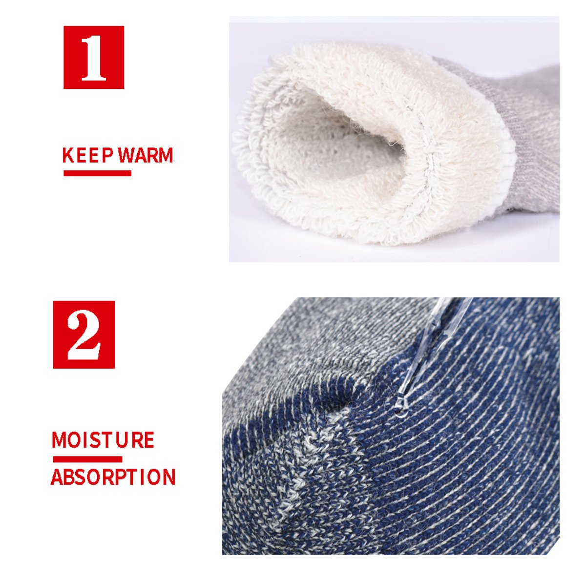 Thick wool gently soaks your feet and protects you from chill.