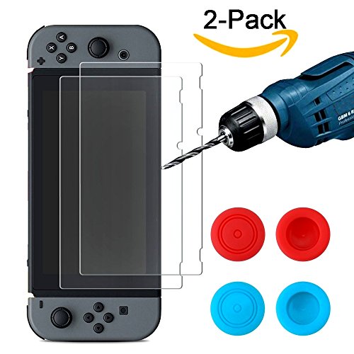 -. Title : Nintendo Switch Tempered Glass Screen Protector (2-Packs) with Thumb Grips Caps, 9H Hardness Nintendo Switch Screen Protector Ultra High Definition Invisible and Anti-Bubble